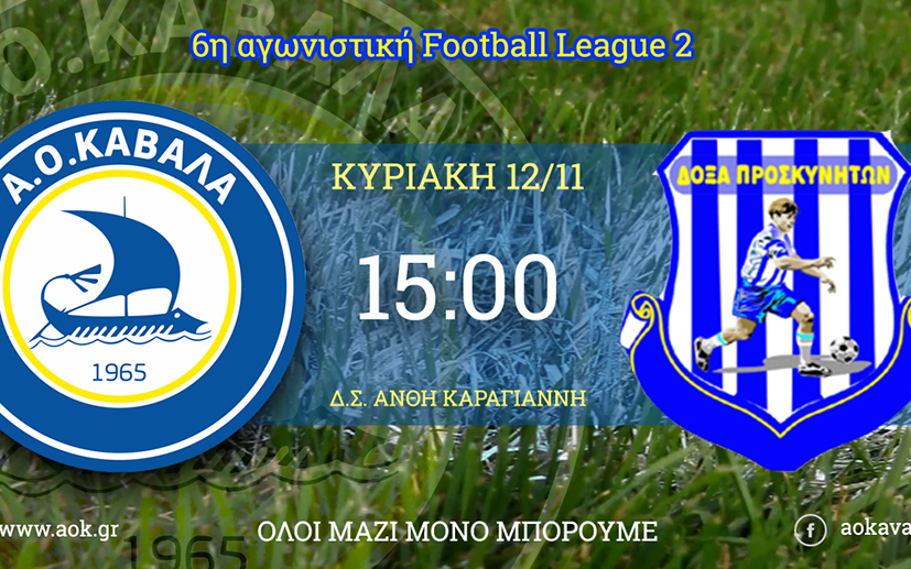 Την Δόξα Προσκυνητών για 2η φορά θα συναντήσει στην ιστορία του ο Α.Ο.Καβάλα.  Η πρώτη φορά που είχε παίξει ξανά, ήταν μάλιστα η πρεμιέρα του πρωταθλήματος όπου ο ΑΟΚ είχε επικρατήσει με 5-2   έχοντας πρωταγωνιστή το Σέρβο Μάρκο Παβίσεβιτς. Τώρα η ομάδα του Ανυφαντάκη θέλει πάση θυσία τους τρεις βαθμούς της νίκης για να μπορέσει να βελτιώσει και άλλο την βαθμολογική του θέση.