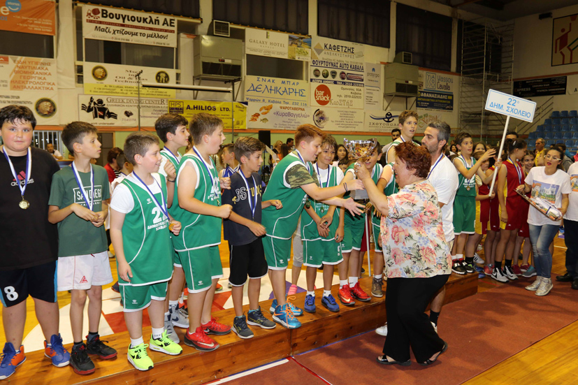 Στους μεγάλους τελικούς πρωταθλήτρια ομάδα κοριτσιών αναδείχθηκε η ομάδα του 25ου Δημ. Σχολείου που νίκησε το Δημ. Σχολείο Παληού με σκορ 34-23 και πρωταθλήτρια ομάδα αγοριών το 22ο Δημ. Σχολείο που νίκησε το 16ο με σκορ 43-34.