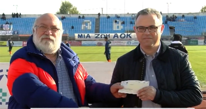Σε μια ωραία τελετή που πραγματοποιήθηκε την Κυριακή το απόγευμα της Κυριακής στο γήπεδο της Καβάλας, «Άνθη Καραγιάννη», ο διευθυντής της εταιρείας παραγωγής λιπασμάτων P.F.I.C κ. Αλέξανδρος Γιαννίκος παρέδωσε στη διοίκηση της ομάδας Α.Ο.Κ 65 επιταγή για την ενίσχυση της.