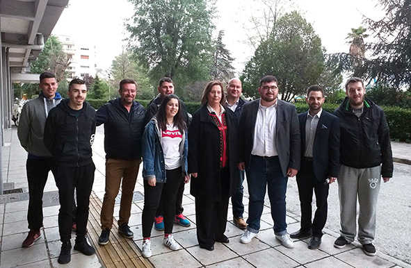 Στη φωτογραφία η Βάσω Παπουτσή – Μήττα με τον Νέο Πρόεδρο της ΟΝΝΕΔ Καβάλας Χρήστο Μιχαλίτση, παλιούς Προέδρους και Στελέχη πρώτης γραμμής της ΔΑΠ-ΝΔΦΚ του Τ.Ε.Ι. έξω απο το εκλογικό κέντρο στη Νομαρχία Καβάλας μετά το κλείσιμο της κάλπης περιμένοντας τα εκλογικά αποτελέσματα.