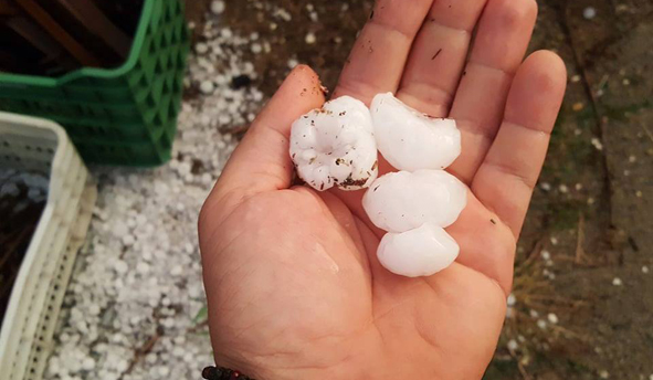 Εκτεταμένες ζημιές σε αμπέλια και ελιές προκάλεσε η έντονη χαλαζόπτωση που έπληξε την περιοχή του Μυρτόφυτου του δήμου Παγγαίου το απόγευμα της Παρασκευής (14-6-2019).