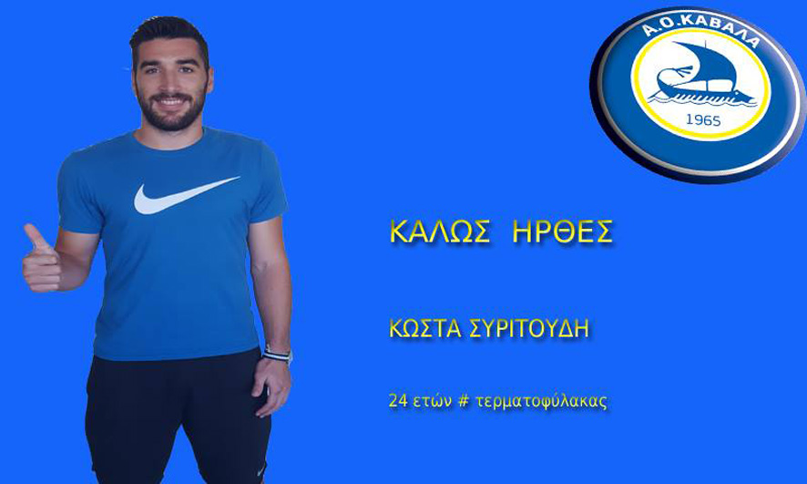Η Διοικούσα Επιτροπή του Α.Ο.Καβάλα είναι στη ευχάριστη θέση να ανακοινώσει την απόκτηση του τερματοφύλακα Κώστα Συριτούδη. Αγωνίστηκε στις ομάδες του Εθνικού Αλεξανδρούπολης και της ΑΕ Διδυμοτείχου, είναι γεννημένος στις 11/4/1992 και έχει ύψος 1.99.