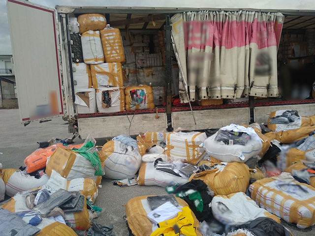 Πιο αναλυτικά, χθες το μεσημέρι στο ύψος του ανατολικού κόμβου Κομοτηνής της Εγνατίας Οδού, κατελήφθη από τους παραπάνω αστυνομικούς αλλοδαπός ο οποίος οδηγώντας Ι.Χ.Φ. αυτοκίνητο (ρυμουλκό μετά ρυμουλκούμενου) μετέφερε περίπου δεκαπέντε τόνους απομιμητικών ειδών (κυρίως αθλητικού ρουχισμού) επώνυμων εταιρειών.