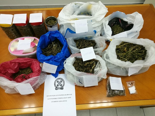 Στη συνέχεια, στην οικία του σε χωριό της Καβάλας, εντόπισαν επίσης 12 συσκευασίες – κυτία με ακατέργαστη κάνναβη, συνολικού βάρους 2.176,4 γραμμαρίων και μια συσκευασία που περιείχε φυτικά αποσπάσματα και κλώνους κάνναβης, βάρους 372 γραμμάριων.