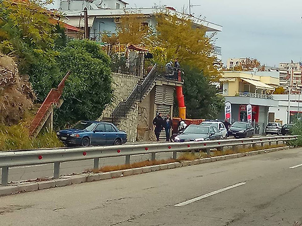 Στο σημείο βρίσκονται περιπολικό της Τροχαίας, όχημα της Ασφάλειας και δικυκλιστές της ομάδας ΔΙΑΣ που διερευνούν την υπόθεση.