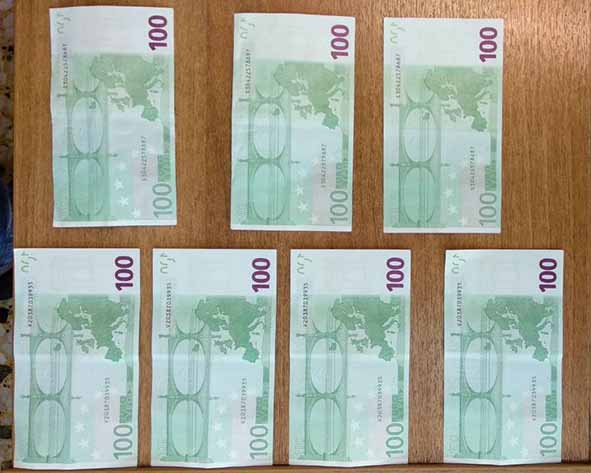 Στην κατοχή του 31χρονου καθώς και το εσωτερικό του Ι.Χ.Ε. αυτοκινήτου που χρησιμοποιούσε, βρέθηκαν και κατασχέθηκαν επτά (7) παραχαραγμένα χαρτονομίσματα των 100 ευρώ.