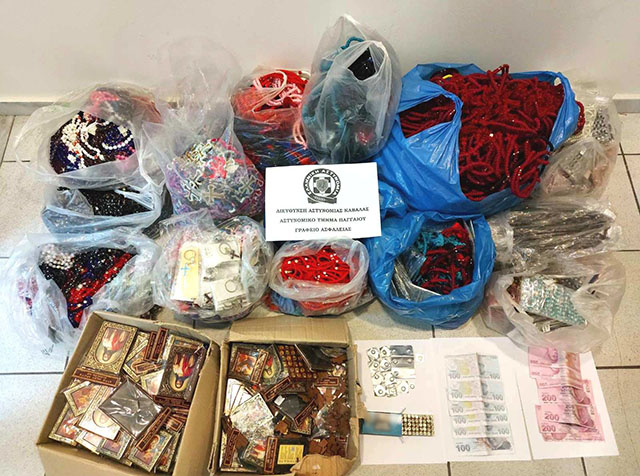 • 120 είδη παρεμπορίου (κομποσκοίνια, σταυρουδάκια, μπρελόκ, εικόνες θρησκευτικού περιεχομένου κ.α.), τα οποία διέθετε προς πώληση στερούμενος της απαιτούμενης άδειας