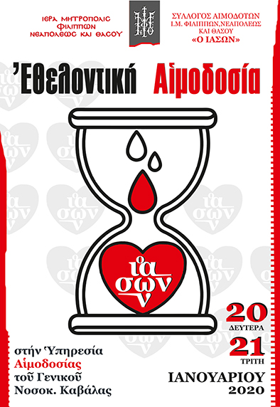 Με μεγάλη χαρά, η Ιερά Μητρόπολη Φιλίππων, Νεαπόλεως και Θάσου ανακοινώνει την σύσταση εθελοντικής Ομάδος Αιμοδοσίας της τοπικής μας Εκκλησίας με την επωνυμία «Ο ΙΑΣΩΝ».