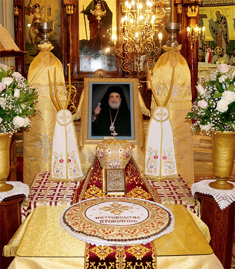 Κατ’ αυτήν ο Σεβασμιώτατος Μητροπολίτης Μεσσηνίας κ. Χρυσόστομος, με την ιδιότητα και του τακτικού μέλους της Διαρκούς Ιεράς Συνόδου της Εκκλησίας της Ελλάδος, ανέλαβε την διακονία του θείου λόγου, αναφερόμενος με γλαφυρό και παραστατικό τρόπο στα πραγματικά και αδιαμφισβήτητα στοιχεία και γεγονότα, που αφορούν στην προσωπικότητα και στο έργο του αειμνήστου και επί σαράντα τρία χρόνια Μητροπολίτου Προκοπίου, αλλά και στις υψηλές μορφές των ευεργετών αυτού Μητροπολιτών Κορίνθου Προκοπίου Τζαβάρα και Παντελεήμονος Καρανικόλα, πλάϊ στους οποίους υπηρέτησε ως διάκονος και ιεροκήρυκας.