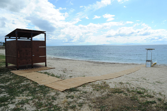 Αποδυτήρια, ξύλινος διάδρομος και ειδική ράμπα SEATRAC για την πρόσβαση ΑμεΑ στην παραλία Αβδήρων