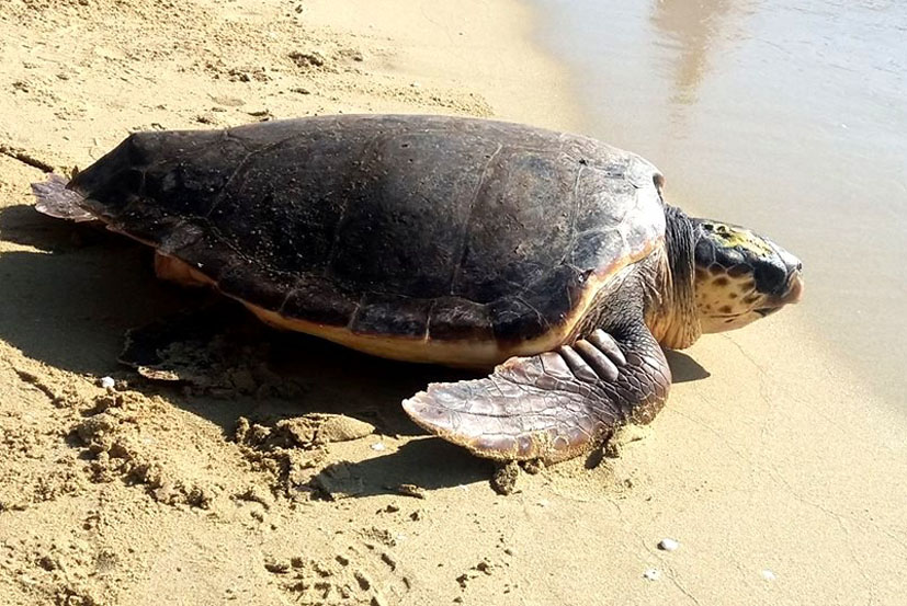 Η συγκεκριμένη χελώνα είχε τραυματιστεί από προπέλα σκάφους στην παραλία Οφρυνίου του δήμου Παγγαίου.