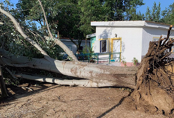Ο συνολικός αριθμός των δέντρων που χτυπήθηκαν από τη μανία της φύσης φτάνει τα 30, ενώ το ευτύχημα είναι ότι όλα έπεσαν σε ελεύθερο χώρο κι όχι στα σπιτάκια όπου φιλοξενούνται μικρά παιδιά. Από νωρίς το πρωί της Τετάρτης (10/7) τα συνεργεία του δήμου Παγγαίου βρέθηκαν επί τόπου αποκαθιστώντας τις ζημιές. Εκτός από τα δέντρα, από τον ανεμοστρόβιλο ξηλώθηκε ο πύργος του ναυαγοσώστη των κατασκηνώσεων, ενώ ζημιές υπέστησαν ηλιακοί θερμοσίφωνες, αλλά και πολλά κιόσκια! Οι παιδικές κατασκηνώσεις, παρά την αναστάτωση λειτούργησαν κανονικά.