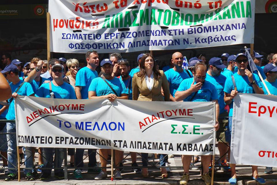 Επίσης την Τρίτη στις 3.15 το απόγευμα ο πρόεδρος του Σωματείου Εργαζομένων κ. Βογιατζίδης, ο πρόεδρος του Εργατικού Κέντρου κ. Μακρογιάννης και ο πρόεδρος της Ομοσπονδίας Εργαζομένων στις Χημικές Εταιρίες κ. Μάκης Θεοχάρης συναντήθηκαν με τον Υπουργό Επικρατείας κ. Φλαμπουράρη, δεδομένου ότι πρόθεση των εργαζομένων είναι το θέμα να φτάσει στο ανώτατο επίπεδο και να δοθεί και πολιτική λύση. Στην συνάντηση με τον κ. Φλαμπουράρη παρέστησαν επίσης και οι βουλευτές Καβάλας Κ. Μορφίδης και Γ. Παπαφιλίππου.
