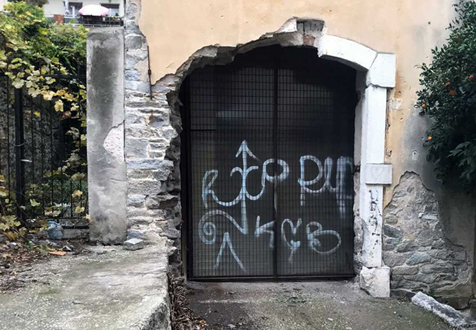 Δεν γνωρίζουμε αν την σιδερένια αυτή εξώπορτα έπεσε μετά από πιθανή παραβίαση ή εξαιτίας πλημμελούς αποκατάστασής της.