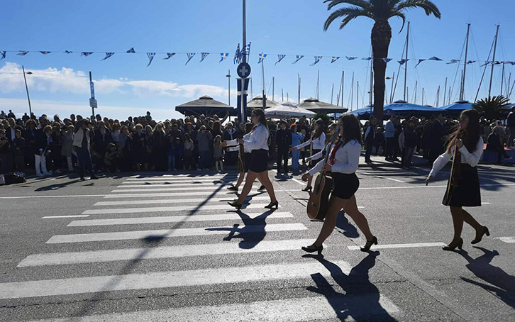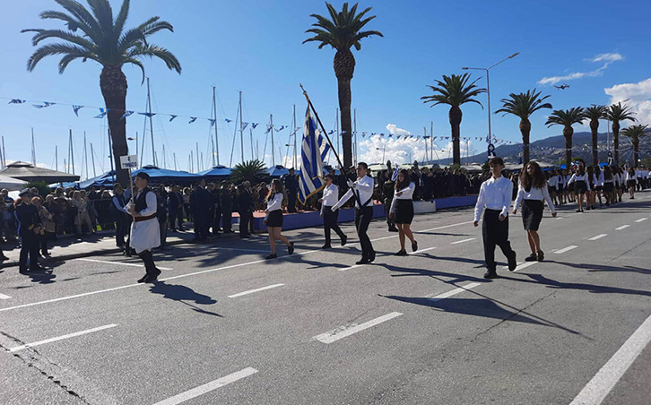 Το μεσημέρι πραγματοποιήθηκε στην παραλιακή λεωφόρο η παρέλαση, μαθητών σχολείων της Πρωτοβάθμιας και Δευτεροβάθμιας Εκπαίδευσης, οργανώσεων, συλλόγων, προσκόπων και οδηγών, καθώς και τμημάτων του στρατού, της εθνοφυλακής, αστυνομίας, λιμενικού και πυροσβεστικής.