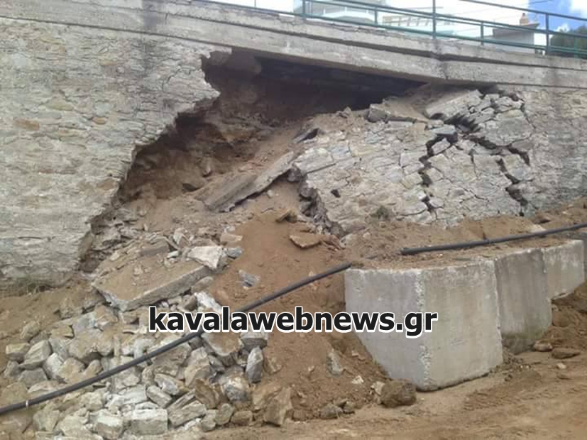 Τοιχίο στήριξης την επαρχιακή οδό Καβάλας- Νέας Περάμου, στην περιοχή Γλάστρες του Παληού κατέρρευσε τις πρωινές ώρες τη Πέμπτης.