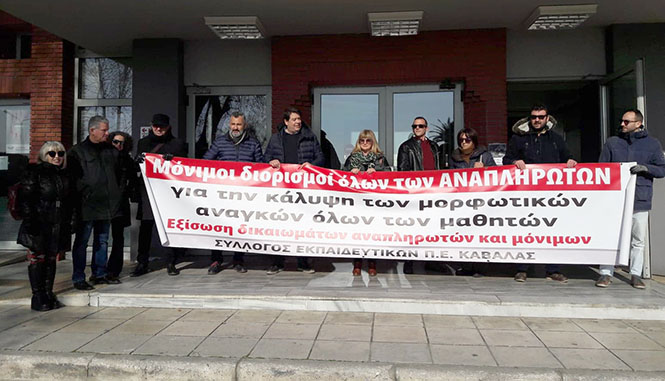 Συγκέντρωση διαμαρτυρίας στην είσοδο της Περιφερειακής Ενότητας Καβάλας, πραγματοποίησαν στις 12:30 το μεσημέρι της Τρίτης (21/1) δάσκαλοι και καθηγητές, στο πλαίσιο τρίωρης στάσης εργασίας, με κυρίαρχο αίτημα να μην ψηφίσει η κυβέρνηση το άρθρο 50 που εξισώνει τα πτυχία των κολεγίων με αυτά των πανεπιστημίων.