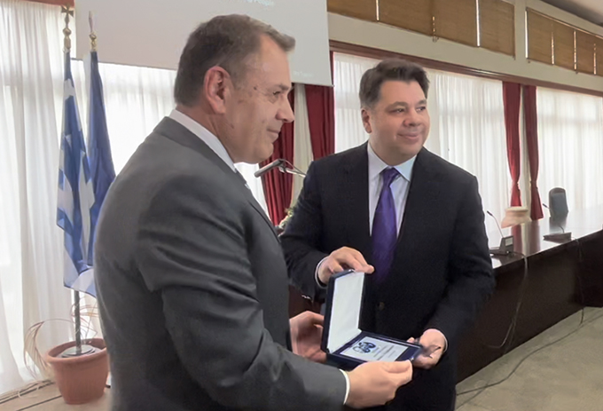 Η εκδήλωση έλαβε χώρα στην Πανεπιστημιούπολη Καβάλας και ο Πρέσβης των ΗΠΑ Mr George Tsunis πραγματοποίησε την αναγόρευση και τη σχετική απονομή στον Υπουργό.