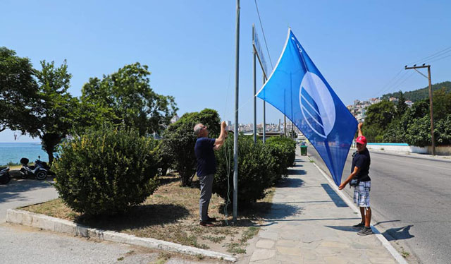 Ο Δήμαρχος Καβάλας, Θόδωρος Μουριάδης, παρουσία του Υπεύθυνου των Ακτών του Δήμου Καβάλας, Ηλία Μαντέχου, ύψωσε το πρωί της Πέμπτης 28 Ιουλίου 2022, μετά τη θετική αξιολόγηση από την Ελληνική Εταιρεία Προστασίας της Φύσης (ΕΕΠΦ), τη γαλάζια σημαία στην παραλία Περιγιαλίου!