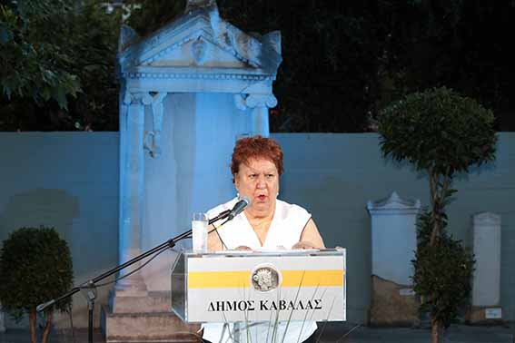 Η δήμαρχος Καβάλας στο χαιρετισμό της τόνισε μεταξύ άλλων «η αδελφοποίηση της Καβάλας με την Νυρεμβέργη, εδώ και 20 χρόνια ενισχύει τις σχέσεις των πολιτών μας, δημιουργώντας ισχυρούς πολιτιστικούς, ιστορικούς και κοινωνικούς δεσμούς. Η αδελφοποίηση αυτή είναι δυνατή και ειλικρινής, προάγοντας τις αξίες της φιλίας και της αλληλεγγύης μεταξύ των δύο τόπων. Πως μπορούμε να ξεχάσουμε τη βοήθεια της αδελφής πόλης στο θέμα των φιλοξενίας των προσφύγων στην Καβάλα. Πως μπορούμε να ξεχάσουμε τη βοήθεια της αδελφής πόλης στο Χαμόγελο του Παιδιού παράρτημα του οποίου λειτουργεί και στην Καβάλα. Πως μπορούμε να ξεχάσουμε τη συνεχή αποστολή εξοπλισμού και τις συναντήσεις εργασίες που βοήθησαν στην καλύτερη οργάνωση των δημοτικών υπηρεσιών».