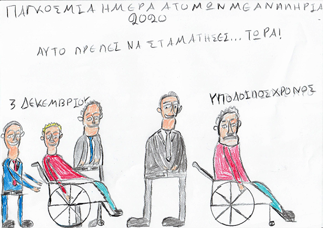 Γιατί τέτοια αντιμετώπισή; Τόσο πολύ διαφέρουμε από τους άλλους ανθρώπους; Θα έλεγε κανείς ότι στις 3 Δεκεμβρίου είστε μαζί από οίκτο και λύπη. Και όμως αυτή η αίσθηση υπάρχει σε εμένα προσωπικά αλλά και σε πολλά άλλα Άτομα με Ειδικές Ανάγκες (Α.Μ.Ε.Α.)
