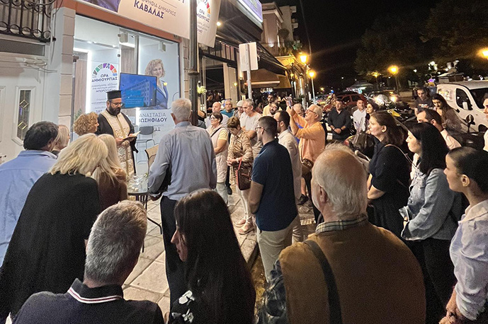 Με μια σεμνή και απέριττη τελετή, όπως απαιτεί η ορθόδοξη λειτουργική παράδοση, καθαγιάστηκε το βράδυ της Πέμπτης το εκλογικό κέντρο της παράταξης ΩΡΑ ΔΗΜΙΟΥΡΓΙΑΣ της υποψήφιας δημάρχου Αναστασίας Ιωσηφίδου.