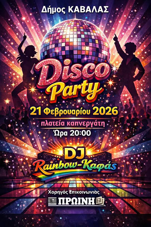Ιδιαίτερη αναφορά έγινε στο Disco Party που θα πραγματοποιηθεί το Σάββατο 21 Φεβρουαρίου 2026, στις 20:00, στην πλατεία Καπνεργάτη. Πρόκειται για μια ανοιχτή γιορτή με πρωταγωνιστή τους DJs’ Rainbow και Καφάς, που υπόσχονται ρετρό ρυθμούς, χορό και έντονα φωτιστικά εφέ, μετατρέποντας το κέντρο της πόλης σε μια μεγάλη πίστα κάτω από τη λάμψη της discο μπάλας.