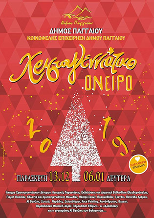 Πυρετώδεις είναι οι προετοιμασίες στον Δήμο Παγγαίου για το «Χριστουγεννιάτικο Όνειρο 2019», το οποίο αρχίζει την Παρασκευή 13 Δεκεμβρίου και ολοκληρώνεται την Δευτέρα 6 Ιανουαρίου 2020.