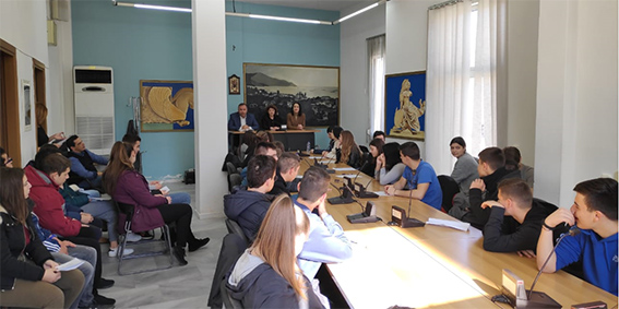 Ο Δήμαρχος Θάσου δέχθηκε τους μαθητές στην αίθουσα του Δημοτικού Συμβουλίου Θάσου, όπου, ως σε προσομοίωση συνεδρίασης του Δημοτικού Συμβουλίου, πραγματοποιήθηκε συζήτηση. Αρχικά ενημέρωσε τους μαθητές για τις αρμοδιότητες και την λειτουργία του Δήμου και στην συνέχεια οι μαθητές έθεσαν προς τον Δήμαρχο τις προτάσεις και τους προβληματισμούς τους που αφορούσαν ποικίλα θέματα όπως, περιβάλλοντος και καθαριότητας, πολιτιστικής κληρονομιάς, ασφάλειας οδικών μετακινήσεων, οδικών και ακτοπλοϊκών συγκοινωνιών, καθώς και την δημιουργία ενός άτυπου συμβουλίου νέων ως συμβουλευτικό όργανο στο Δήμο Θάσου.