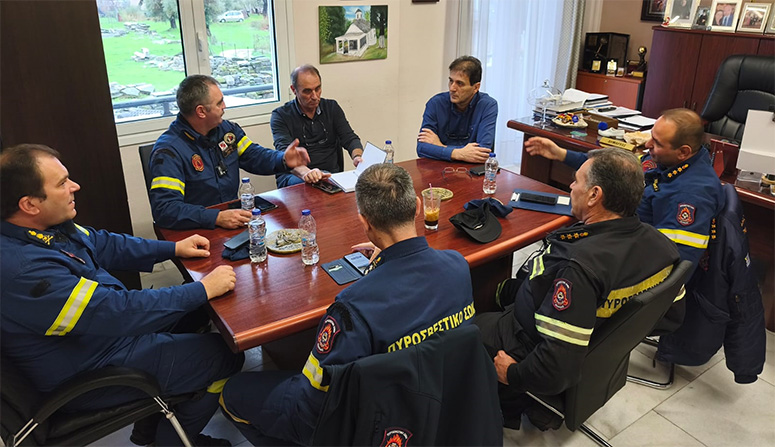 Στην συνάντηση συμμετείχαν επίσης, ο Προϊστάμενος του Πυροσβεστικού Κλιμακίου Θάσου Αντιπύραρχος κ. Σπυρίδων Δερβένης, καθώς και ο Πύραρχος κ. Νικόλαος Νικολόπουλος.