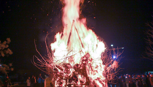 Με επισημότητα και με την συμμετοχή όλων γινόταν το βράδυ της ίδιας μέρας το άναμμα της φωτιάς στην αυλή της εκκλησίας. Τη φωτιά αυτή έλεγαν “κελεμέν” ή “Φώτων”.