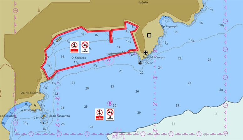 Για λόγους ασφαλείας των λουομένων και πρόληψης ατυχημάτων καθ’ όλη τη διάρκεια του έτους, υπενθυμίζεται ότι: Απαγορεύεται η αγκυροβολία και η αλιεία στην περιοχή που βρίσκεται: