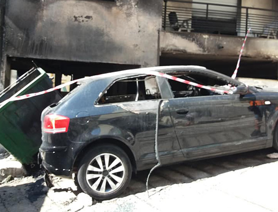Η φωτιά εκδηλώθηκε στην πυλωτή πολυκατοικίας, ενώ προκλήθηκαν ζημιές και στα διαμερίσματα του 1ου και του 2ου ορόφου.