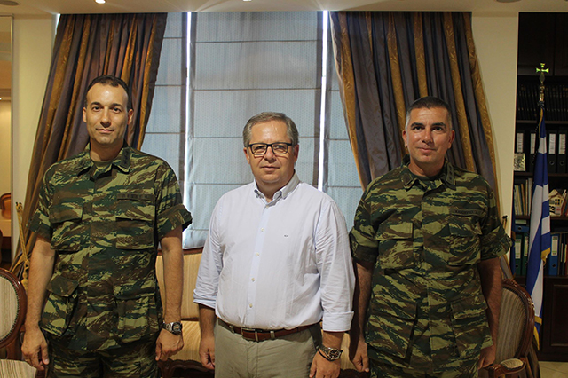 Εθιμοτυπική επίσκεψη στον αντιπεριφερειάρχη Καβάλας Θόδωρο Μαρκόπουλο πραγματοποίησαν το μεσημέρι της Δευτέρας (20/8), ο απερχόμενος και ο παραλαμβάνων διοικητής της 193 Μοίρας ΠΕΠ MLRS, αντισυνταγματάρχης (ΠΒ) Δημήτριος Καβούρης και αντισυνταγματάρχης (ΠΒ) Ηλίας Πέτας αντίστοιχα.