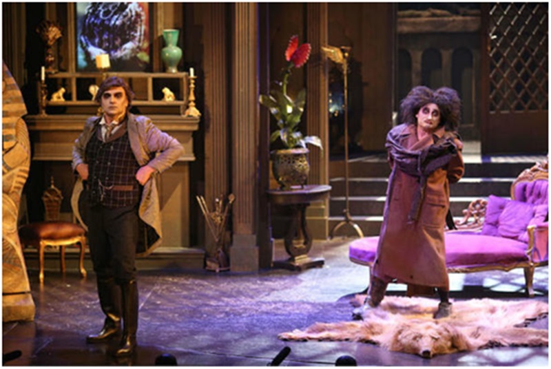 Πιο αναλυτικά, στην απομονωμένη οικία Μάντακρεστ, όπου ζει ο Έντγκαρ μαζί με την ιδιότροπη οικονόμο Τζέιν Τουίσντεν, τον ιδιόμορφο υπηρέτη Ίγκορ Άντεργουντ, ο οποίος θα μπορούσε κάλλιστα να είναι ο Ταρνανάς της Λωξάνδρας, αν ο συγγραφέας δανειζόταν από την πολίτικη κουλτούρα της Ιορδανίδου, αλλά ο Ιγκόρ δεν έχει καμπούρα, έχει ένα ξύλινο πόδι, ενώ ο όμορφος ΄Εντγκαρ συμβιώνει και με τη δεύτερη σύζυγό του λαίδη Άλμπα. Το πνεύμα της πρώτης συζύγου του, της λαίδης Ίρμα, κατατρέχει τους πάντες. Τα υπονοούμενα και τα ερωτικά παιχνίδια δε σταματούν και οι λυκάνθρωποι μπλέκονται με τους βρικόλακες και τις μούμιες στην παιγνιώδη πλοκή του έργου που αποκαλύπτει το ευφυές πνεύμα του συγγραφέα, ο οποίος παρωδεί το γκροτέσκο, την ελισαβετιανή δραματουργία, τη λογοτεχνία του φανταστικού, τις ταινίες τρόμου, στήνει ένα αλλόκοτο σκηνικό πανηγύρι, όπου οι δύο ηθοποιοί επιδίδονται σε μια ανεπανάληπτη εναλλαγή ρόλων.