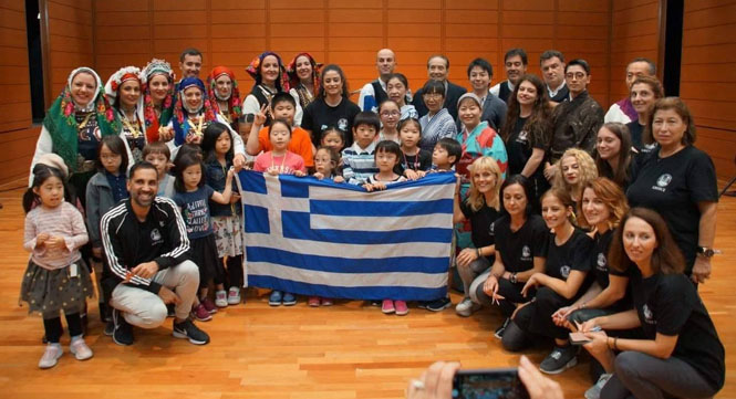 Αφήνοντας πίσω τον τυφώνα Hagibis, άλλωστε η επόμενη μέρα στο Τόκιο ήταν ηλιόλουστη και με ελάχιστα προβλήματα συγκριτικά με τις επαρχίες που επλήγησαν, το Λύκειο έδωσε ακόμη μία παράσταση στις 14 Οκτωβρίου 2019 σε θέατρο στην περιοχή Roppongi, στο Τόκυο, για την Οργάνωση Kid’s Fu. Ο ενθουσιασμός ήταν μεγάλος και η προσμονή για την έλευση της ελληνικής χορευτικής ομάδας ακόμη πιο μεγάλη. Ήδη είχαν δουλέψει αρκετά, είχαν κάνει καιρό τώρα πρόβες με ελληνικούς χορούς. Το ΛΕΚ χόρεψε με ζωντανή μουσική που έπαιζαν δύο Ιάπωνες μουσικοί, ένας στο βιολοντσέλο κι άλλος στο πιάνο, και μικροί και μεγάλοι ακολούθησαν τους χορευτές-τριες του Λυκείου στα χορευτικά τους βήματα. Το ίδιο έγινε και για την ελληνική αποστολή που ακολούθησε χορευτικά βήματα δίπλα στους Ιάπωνες χορευτές με παραδοσιακούς χορούς της Ιαπωνίας. Πανδαισία χρωμάτων, γλώσσας, ηλικιών, μια και μικρά παιδιά 5 – 7 ετών από την Οργάνωση Kid’s Fun, ακολουθούσαν ανάμεσα στους Ιάπωνες και Έλληνες χορευτές –τριες τα βήματα χορού των δύο πολιτισμών. Η χαρά ήταν έκδηλη στα πρόσωπα όλων μας. Λίγο πριν το τέλος, τα παιδιά πρόσφεραν στα μέλη της ελληνικής αποστολής Origami, καλλιτεχνήματα με χαρτί που είχαν ετοιμάσει για να μας ευχαριστήσουν.