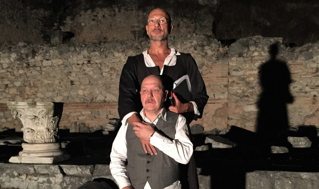 Επρόκειτο για μια διδασκαλία – αφήγηση με δραματοποιημένες σκηνές από τον εξαιρετικό Θέμη Πάνου, έμπειρο ηθοποιό με θεατρικές περγαμηνές και κινηματογραφικά βραβεία, τον χορευτή Δημήτρη Σωτηρίου, που απέδωσε λιτά και ώριμα τον Τειρεσία και την Ιοκάστη ως φιγούρα σκοτεινή, θύμα της ειμαρμένης αλλά σε δεύτερη θέση, πίσω από τη λάμψη βασίλισσας. Επίσης, είδαμε τον ηθοποιό Θανάση Δήμου άλλοτε να ερμηνεύει χαρακτήρες κι άλλοτε ν’ αφηγείται, καθώς και τον ίδιο τον Θοδωρή Γκόνη ως κύριο αφηγητή, ενώ ερμήνευσε και τον ρόλο του βοσκού- θεματοφύλακα του φοβερού μυστικού, του οποίου η φανέρωση οδήγησε τον αιμομίκτη βασιλιά στην αυτοτιμωρία του.
