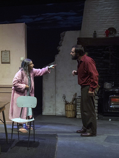 Μέσα στο καταπονημένο από τον χρόνο και την ένδεια σπίτι των δύο γυναικών, όπως αποτυπώνεται ατμοσφαιρικά και λειτουργικά στο σκηνικό του Γιώργου Χατζηνικολάου (μια κουζίνα με όλα τα χρειώδη, μια σόμπα –εργαλείο εμφατικής επικράτησης στην εξέλιξη της ιστορίας, ένας νιπτήρας που ζέχνει, ένα τραπέζι και μια κουνιστή καρέκλα σαν σύμβολο ψυχικών διαταραχών. Κάτω από τους ατμοσφαιρικούς φωτισμούς του Αντώνη Παναγιωτόπουλου, ο θεατής νιώθει όλη τη μοναξιά και την απομόνωση ανθρώπων και τόπου, που, σταδιακά, οδηγούν μάνα και κόρη στην τρέλα και στα άκρα.