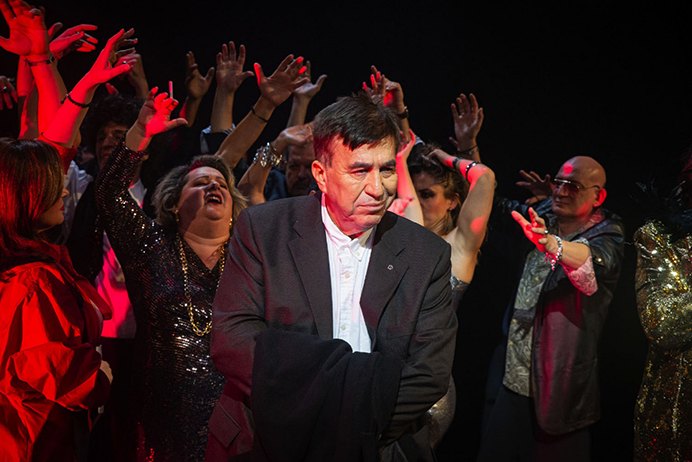 Το ΚΘΒΕ ανέβασε μια ευχάριστη μουσικοθεατρική παραγωγή στο «Βασιλικό Θέατρο», βασισμένη στο βιβλίο του Θάνου Αλεξανδρή, σε διασκευή και σκηνοθεσία του καλλιτεχνικού Διευθυντή του Αστέρη Πελτέκη, ο οποίος στήνει ένα «σκυλάδικο», όπου τραγούδια, ντέρτια, γλέντια και καημοί παρελαύνουν, συνθέτοντας το πορτρέτο μιας Ελλάδας, που μπορεί να μην υπάρχει πια, όμως η αισθητική της στάθηκε καθοριστική για τη ζωή στη νύχτα της πίστας, της σαμπάνιας, των πιάτων και των λουλουδιών.