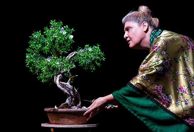 Οι τρεις γυναίκες επί σκηνής: Νατάσσα Αστρεινίδη-Χριστίνα Κοροβίλα-Δήμητρα Σταματίου, ερμηνεύουν και αφηγούνται μαρτυρίες παθόντων αλλά και σημασιολογικά στοιχεία γύρω από την ιαπωνική φιλοσοφία ζωής, ενώ ακούμε μια σύντομη εισήγηση – απόπειρα μύησης στην τεχνική φροντίδας ενός μπονσάι.