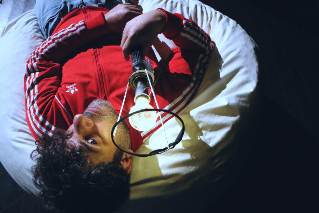 Με έξυπνη σκηνική εγκατάσταση, ένα γραφείο, μια εργονομική καρέκλα, μια πάνινη κούκλα, πολλά μαξιλάρια στο πάτωμα και ένα φωτιστικό δαπέδου, η παράσταση μάς μεταφέρει στον κόσμο του ήρωα, πολύ κοντά στον σημερινό, αν όχι στον προσωπικό μας.