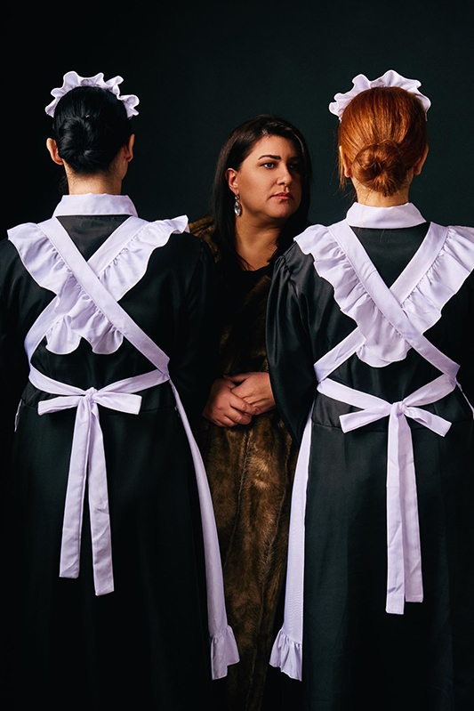 Και στην Καβαλιώτικη παρουσίαση των «Υπηρετριών», η συγγραφική μαεστρία του Ζενέ να φέρει το θέατρο μέσα στο θέατρο, οι δύο αδερφές δονούνται από δολοφονικά ένστικτα, εκδηλώνουν νευρώσεις και ζουν τη μεγάλη σύγκρουση, μιας και η «Κυρία» – που πλέον είναι υποχείριό τους, εφόσον την υποδύονται – φαίνεται να τις αγαπά, να θέλει να τους δίνει πράγματα, να στηρίζεται επάνω τους.