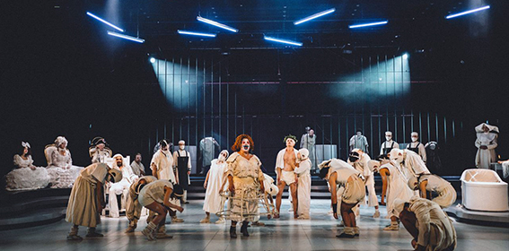 Το πολυσυζητημένο έργο το περιμέναμε πέρυσι. Η πανδημία και οι συνέπειές της εμπόδισαν την ολοκλήρωση της προετοιμασίας, η οποία διήρκησε σειρά μηνών. Πολυπρόσωπη παράσταση, απαιτητική στις πολλές παραμέτρους της, εξαντλητικές πρόβες εν μέσω απαγορεύσεων, πολλή δουλειά από όλους τους συντελεστές, όμως ο έμπειρος και ικανότατος ηνίοχος Κοραής Δαμάτης φέρνει, τελικά, ένα εντυπωσιακό «Άρμα Θέσπιδος», ένα άρτιο «παραστατικό» αποτέλεσμα στο εμβληματικό θέατρο της Ε.Μ.Σ και το Κ.Θ.Β.Ε. κάνει την πρεμιέρα του με περηφάνια που τη δικαιούται.