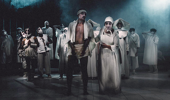 Άξιοι επαίνου όλοι οι ηθοποιοί του Κ.Θ.Β.Ε. που ενώνουν τις φωνές τους, το ταλέντο τους κι ερμηνεύουν τους «τρελούς» ασθενείς του ιδρύματος και τις νοσοκόμες – επιστάτες , σαν ένα καλοκουρδισμένο και εκπαιδευμένο σύνολο που απλώνει γενναιόδωρα στη σκηνή το σκηνοθετικό όραμα.