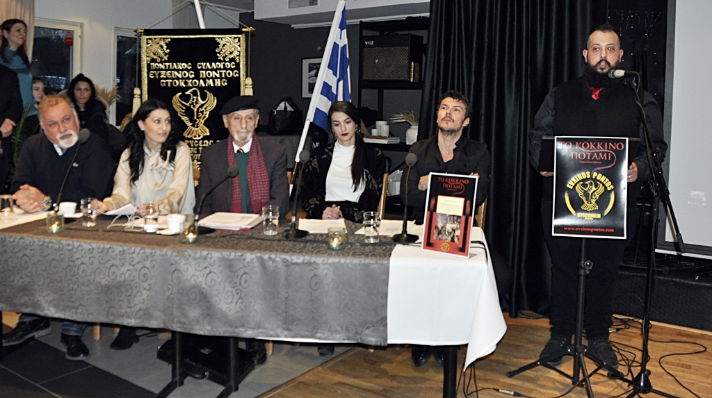 Σε μία κατάμεστη αίθουσα, ο γραμματέας του Συλλόγου «Εύξεινος Πόντος Στοκχόλμης» κ. Τίμος Κετσετζίδης στην σύντομη ομιλία του τόνισε χαρακτηριστικά για το βιβλίο, το οποίο κλείνει φέτος τη 10χρονη έκδοση του πως «το Κόκκινο Ποτάμι, ρέει, ταξιδεύει με αφετηρία του τον Εύξεινο Πόντο Στοκχόλμης και του ευχόμαστε καλή συνέχεια σε αυτό το πνευματικό ταξίδι».