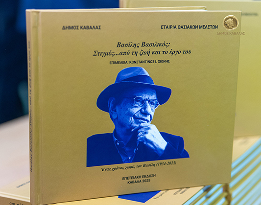 Μια εκδήλωση υψηλού πολιτιστικού συμβολισμού και ιστορικής σημασίας πραγματοποιήθηκε το απόγευμα της Τετάρτης 5 Νοεμβρίου 2025, στη Δημοτική Βιβλιοθήκη Καβάλας «Βασίλης Βασιλικός», όπου παρουσιάστηκε το λεύκωμα με τίτλο «Βασίλης Βασιλικός: Στιγμές… από τη ζωή και το έργο του».