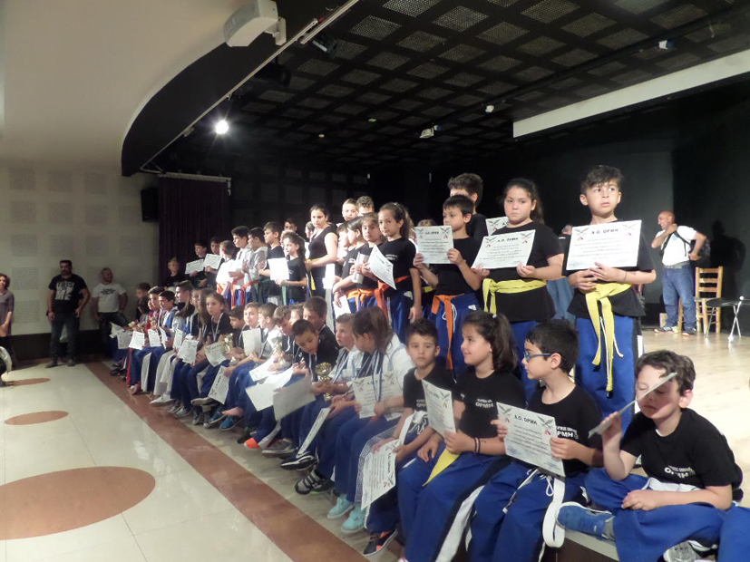 Γονείς και φίλοι του συλλόγου γέμισαν την αίθουσα και χειροκρότησαν τους συνολικά 65 αθλητές-τριες που παρουσίασαν μια εικονική μάχη, διαγωνίστηκαν στο παραδοσιακό καράτε στην ύλη που διδάχθηκαν στη διάρκεια της χρονιάς.